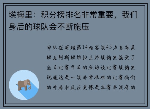 本文将详细探讨阿尔特塔率领的球队在与马德里竞技的比赛中意外大胜四球的背后原因,同时分析球队在定位球方面的不足及未来提升空间。虽然这场比赛的结果令人惊讶,球队展现出强大的进攻火力,但阿尔特塔也指出球队的定位球能力依然有待大幅提升。在文章中,我们将从四个主要方面来分析阿尔特塔的评价和球队的表现:首先是阿尔特塔对于比赛结果的反思和意外之处;其次是球队在进攻端的出色发挥;第三部分则是对球队定位球能力的深入...